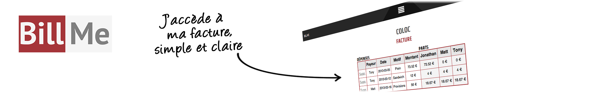 Bienvenue sur BillMe ! Le site du partage de dépenses facile.